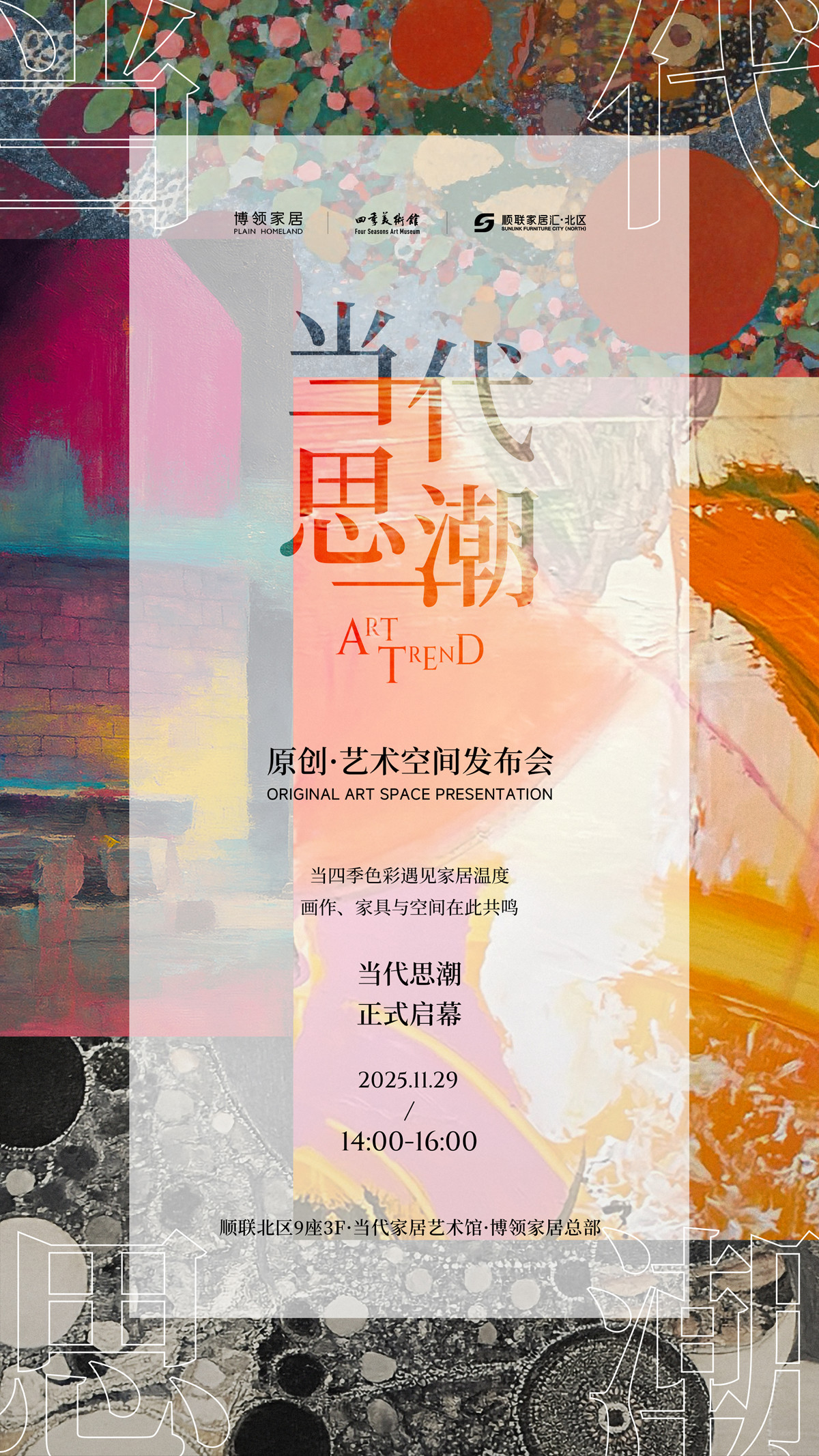 11月29日,在顺联北区·当代家居艺术馆,由博领家居、四季文旅、顺联家居汇联袂呈现的 「原创·艺术空间」发布会 圆满举行。我们荣幸地与众多嘉宾、艺术家和媒体朋友,共同见证了一场关于“当代思潮,原创共生”的深度演绎。